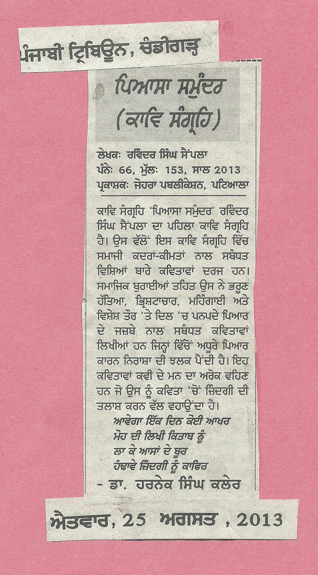 » Piayasa Samunder published on Sunday 25 August 2013